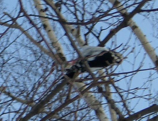 キツツキらしく、木をコツコツつっついてる様子。